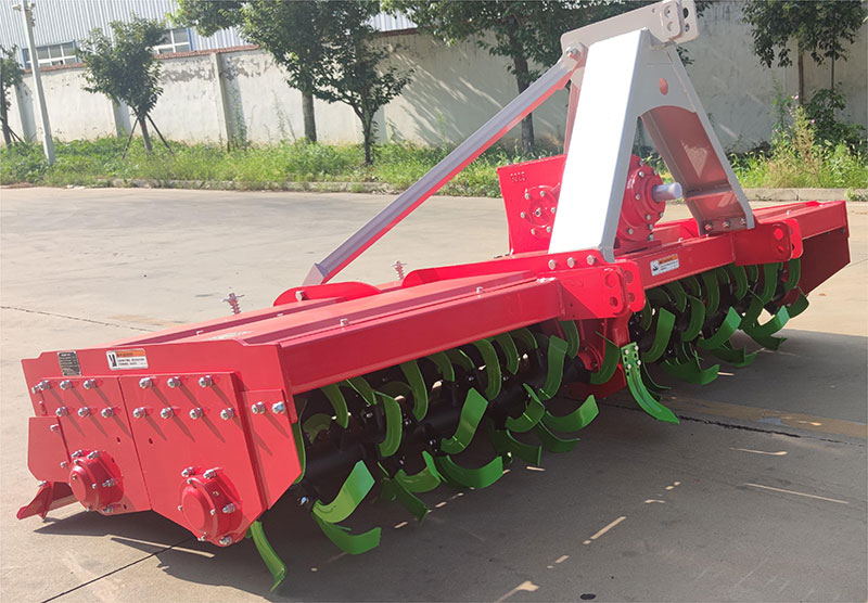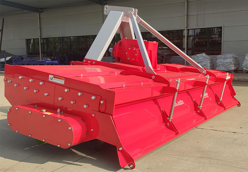 該機具主要用于旋耕整地作業(yè),農藝順序為旋耕-旋耕-鎮(zhèn)壓-拖平。專利設計,合理利用刀軸外端二次動力傳輸,帶動后刀軸工作,達到二次粉碎。機械傳動環(huán)節(jié)少,有效節(jié)省了拖拉機的馬力消耗。一遍頂兩遍的作業(yè)模式,大大提高工作效率。前刀軸和后刀軸連續(xù)作業(yè),拖板鎮(zhèn)壓拖平,提高作業(yè)質量。