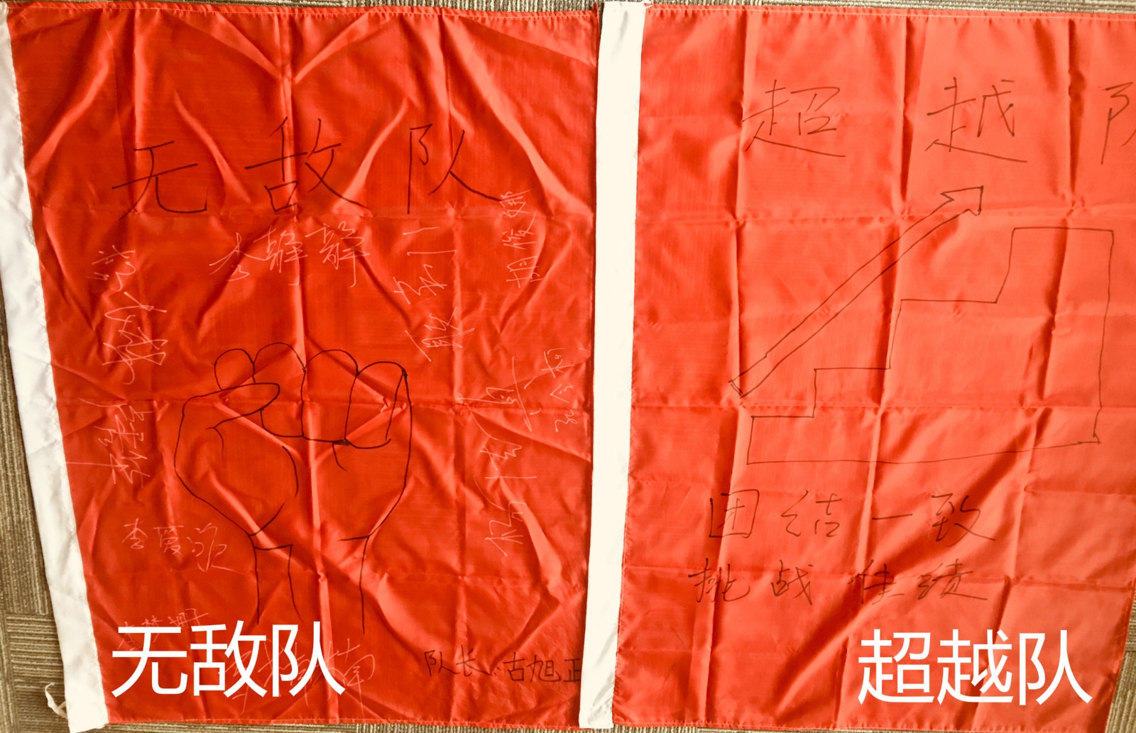 士氣展示,每組在隊(duì)長(zhǎng)的帶領(lǐng)下,繪制隊(duì)旗隊(duì)呼,并列隊(duì)進(jìn)行展示,在展示的過(guò)程中,在每一個(gè)隊(duì)員的配合下,整齊劃一,士氣滿滿。