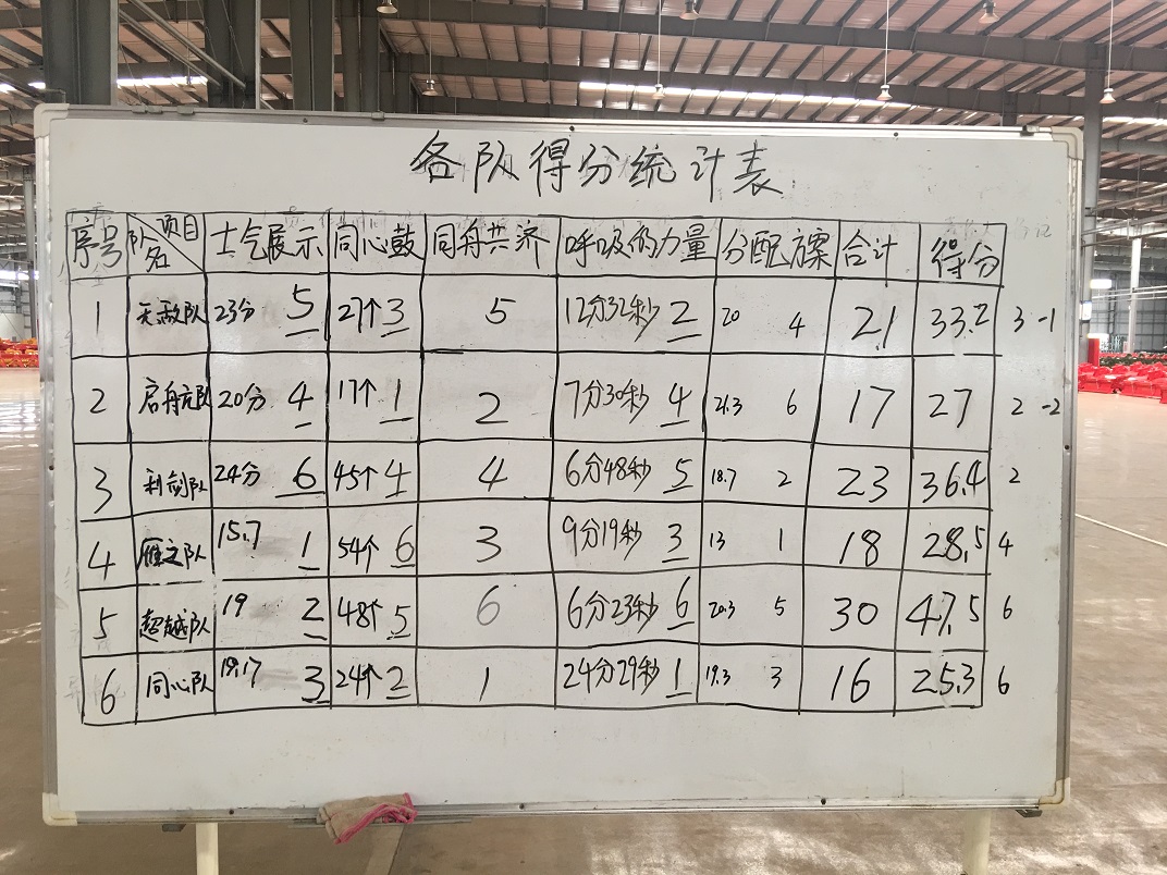 活動(dòng)開(kāi)始前,通過(guò)短暫的熱身活動(dòng),打破了員工之間的隔閡,營(yíng)造了團(tuán)隊(duì)氛圍。接下來(lái),在總教練的指導(dǎo)下,全體員工分為六組在士氣展示、同心鼓、同舟共濟(jì)、呼吸的力量等幾個(gè)項(xiàng)目上進(jìn)行了比拼。