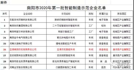 根據(jù)《河南省智能制造和工業(yè)互聯(lián)網(wǎng)發(fā)展三年行動計劃(2018—2020年)》(豫政〔2018〕14號)文件要求,南陽市篩選出的A類企業(yè)名單,是符合集聚區(qū)產(chǎn)業(yè)發(fā)展方向、資源利用效率高、質(zhì)量效益好的企業(yè),是轉(zhuǎn)型發(fā)展攻堅的引領(lǐng)力量,也是最有條件和能力實施智能化改造的先導(dǎo)群體。將作為河南省產(chǎn)業(yè)集聚區(qū)首批智能化改造推薦企業(yè)。